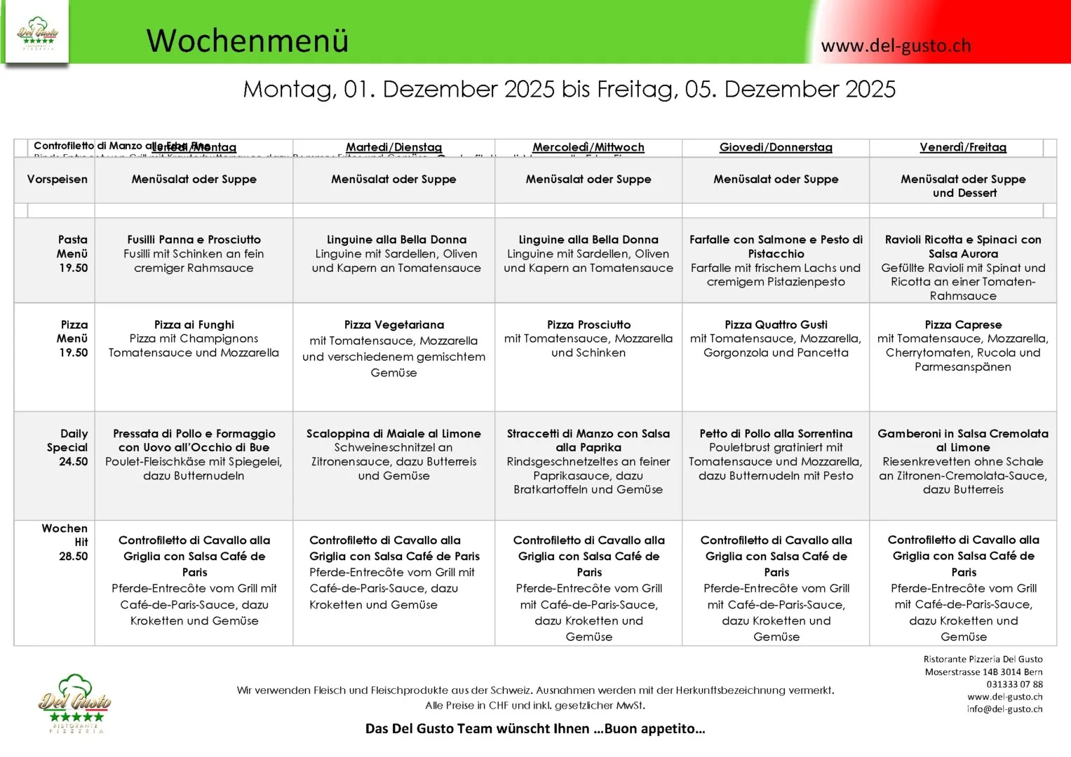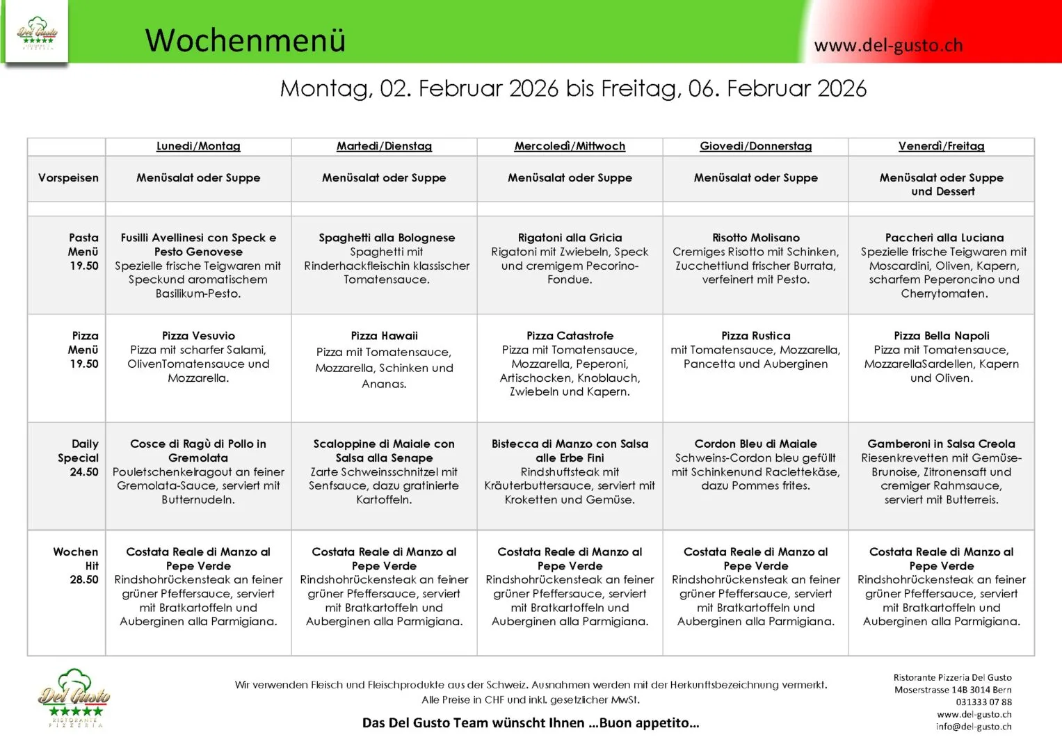Jede Woche ein frisches und abwechslungsreiches Angebot für Sie, um uns von Montag bis Freitag mittags zu besuchen.